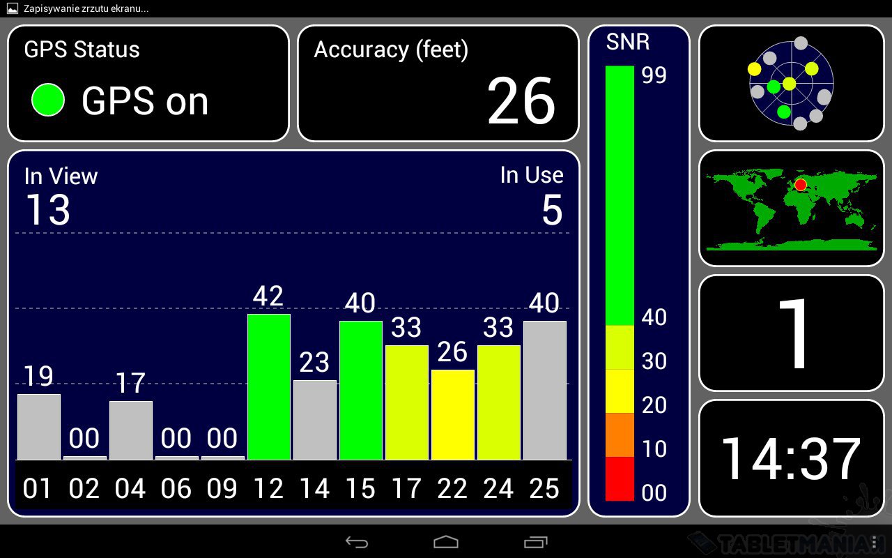 Byłem pozytywnie zaskoczony szybkością łapania zasięgu GPS, i szczerze powiedziawszy, w pierwszej chwili pomyślałem, że po prostu aplikacja popełniła błąd. Ponowny test tylko potwierdził szybkość łapania fixa. W dodatku przeprowadziłem go bez wspomagania sieci 3G. Nie wiem, jak bardzo gęste lasy masz zamiar przemierzać, ale swojego testu dokonałem w bardzo pochmurny dzień. Myślę, że GPS tabletu spełni Twoje oczekiwania.
